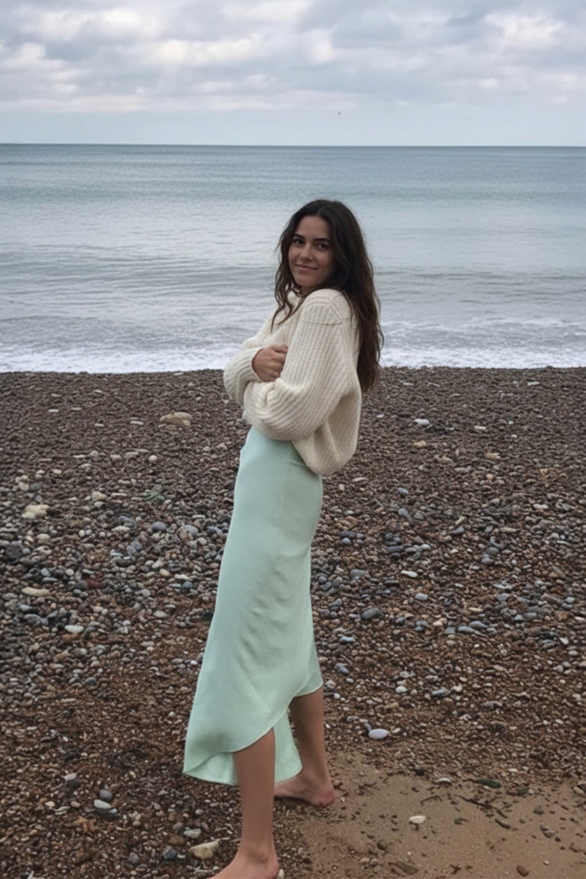 The Melanie Skirt is the perfect piece for summer events or wedding guests, made from crepe fabric in a beautiful mint green color. With an asymmetrical midi silhouette and a side zip, this piece is the ideal pick for a special occasion.